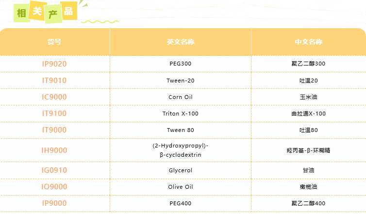 可以有效的帮助脂溶性强的化合物溶解,可作为药物分子的载体,是常用的助溶剂/增溶剂。